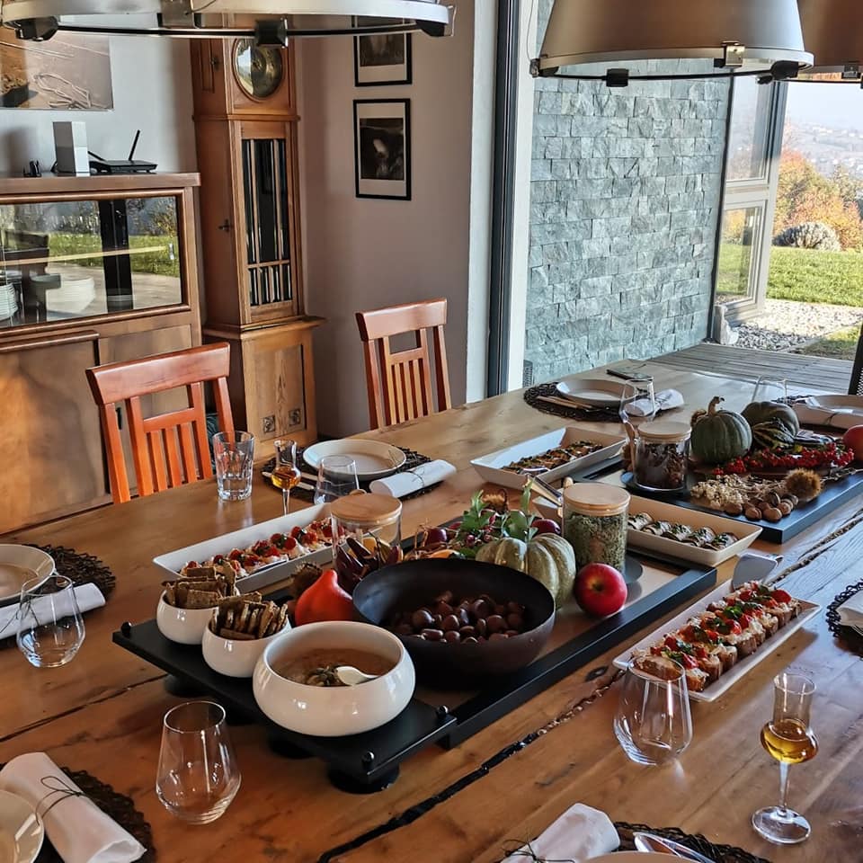 My story has been slowly boiling in the kettle for a while now. Finally, my family and I moved from a crowded city to a peaceful village and, after many years, I decided to express my passion for culinary art. Most of the groceries I use come from our garden, greenhouse or local farmers. Raised naturally around our home I use them as spices, for making tea or potion. Juices, cider and spirits distilled and made by our own. Cozy space, enough room for groups up to 12 guests.