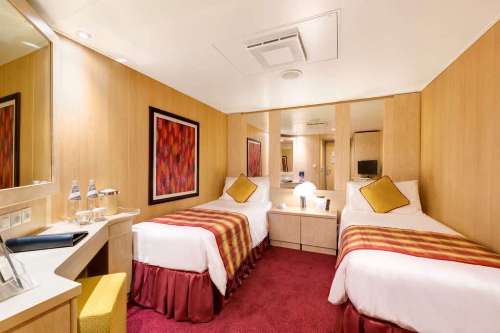 Cijena za jednokrevetnu kabinu: na upit (+100%). Guaranteed – bez mogućnosti biranja palube kabine; kabina može biti i s ograničenim pogledom.